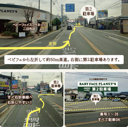 お車でお越しの際、店舗駐車場が満車の場合は、第2駐車場をご利用ください。