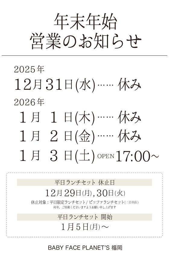 日頃より、ベビーフィスプラネッツ福岡を ご愛顧いただき、誠にありがとうございます。