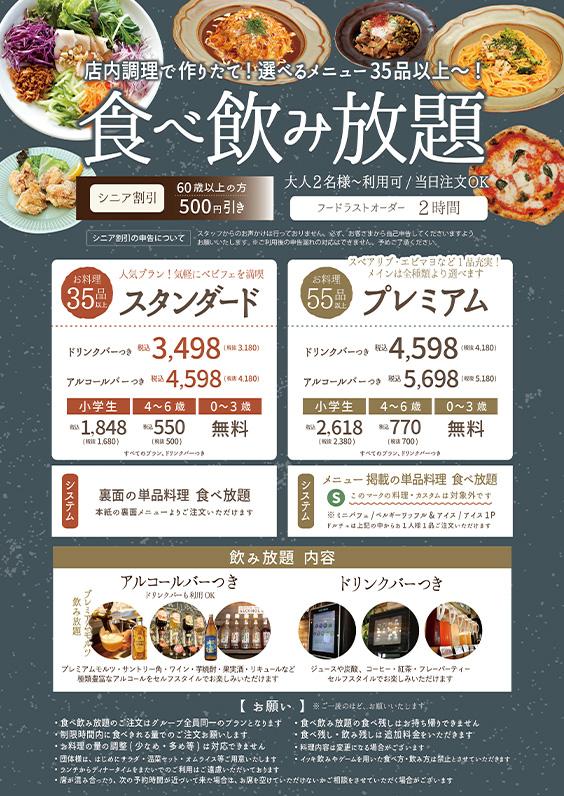 食べ飲み放題 プレミアムプラン