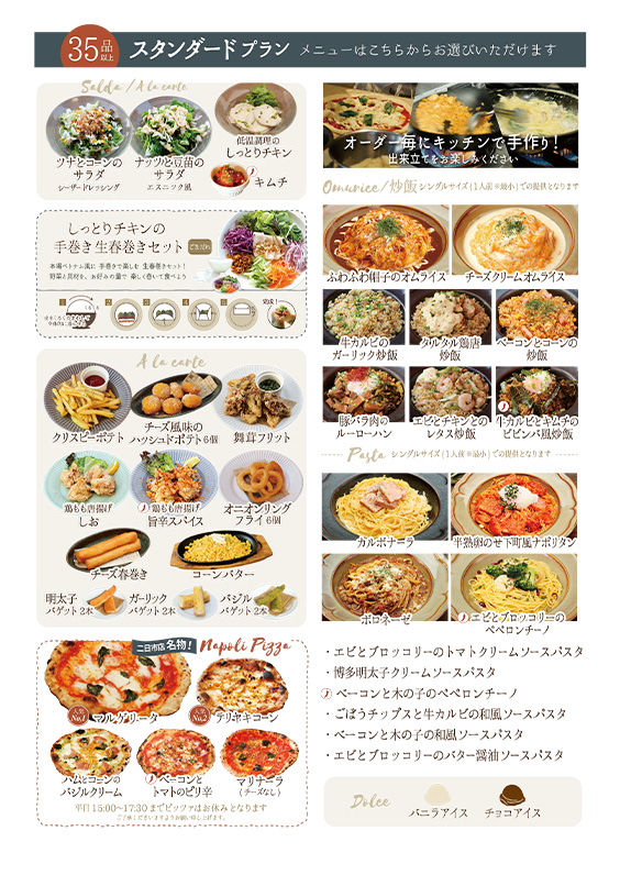 食べ飲み放題のパスタ・オムライス・炒飯は