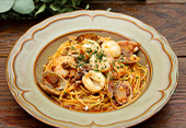 Spaghetti alla pescatore with meat sauce