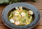 Spaghetti alla pescatore with pesto genovese